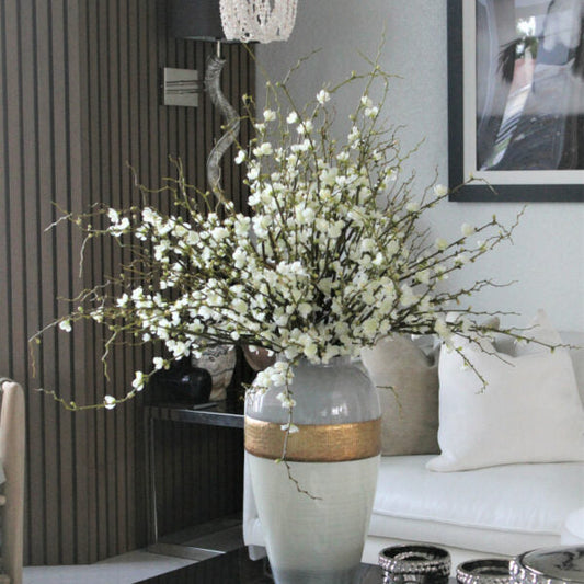 Vase „Göttin“ mit burgunderroten Kirschblüten